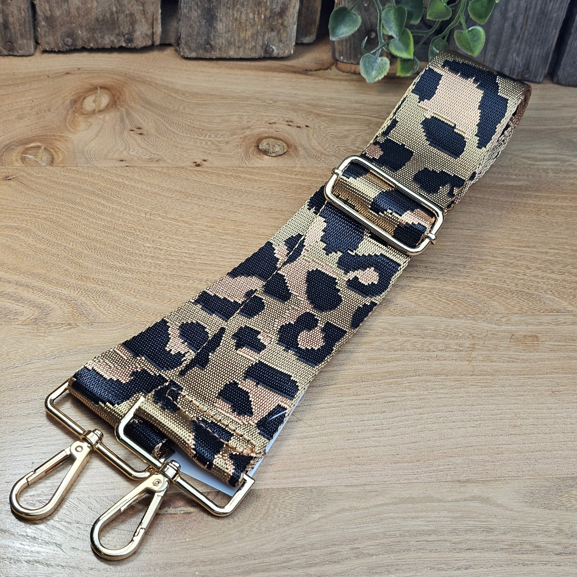 Bandoulière motifs léopard camel et doré