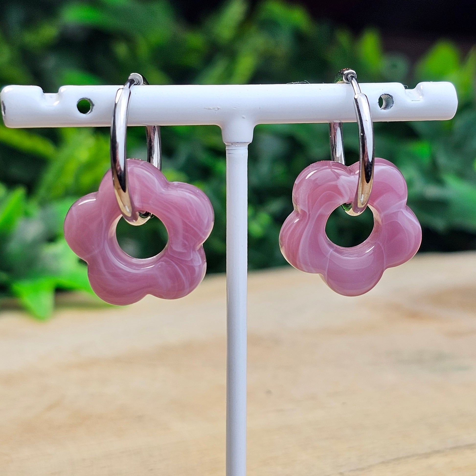Boucles d'oreilles Perly fleurs moyenne 20 mm) prune