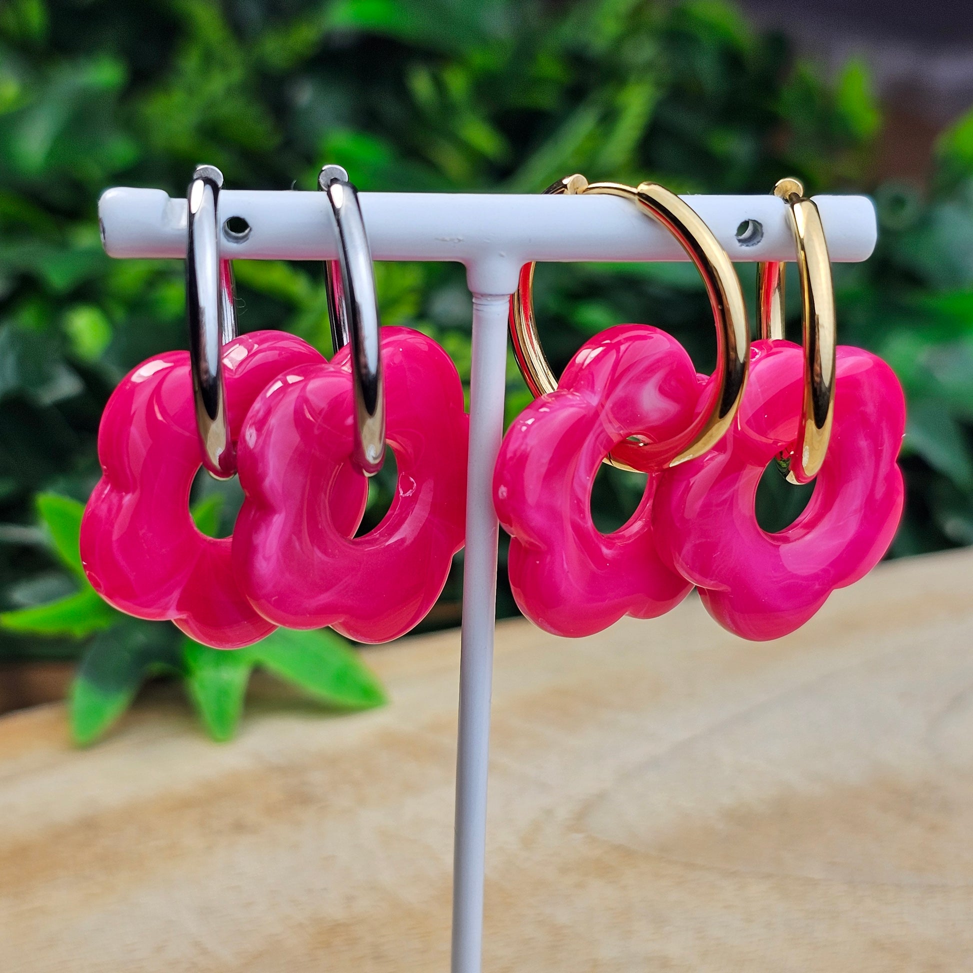 Boucles d'oreilles Perly (Grande fleurs 25 mm) fuchsia