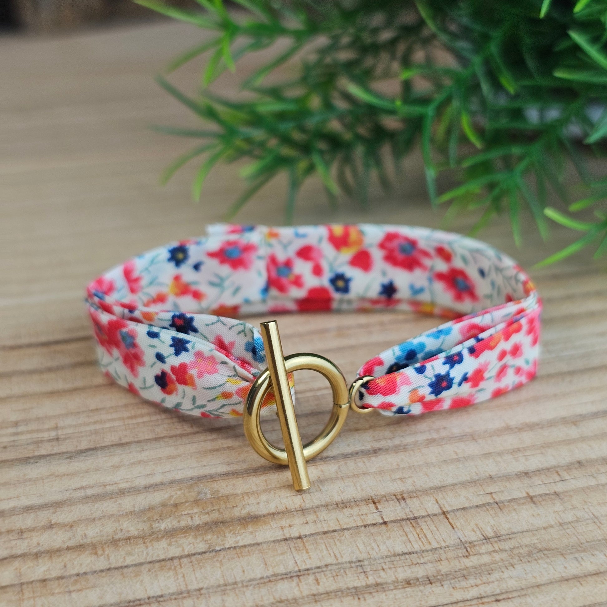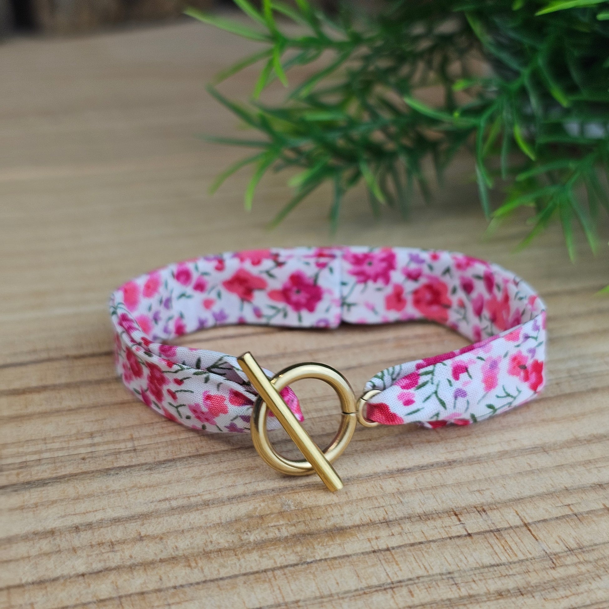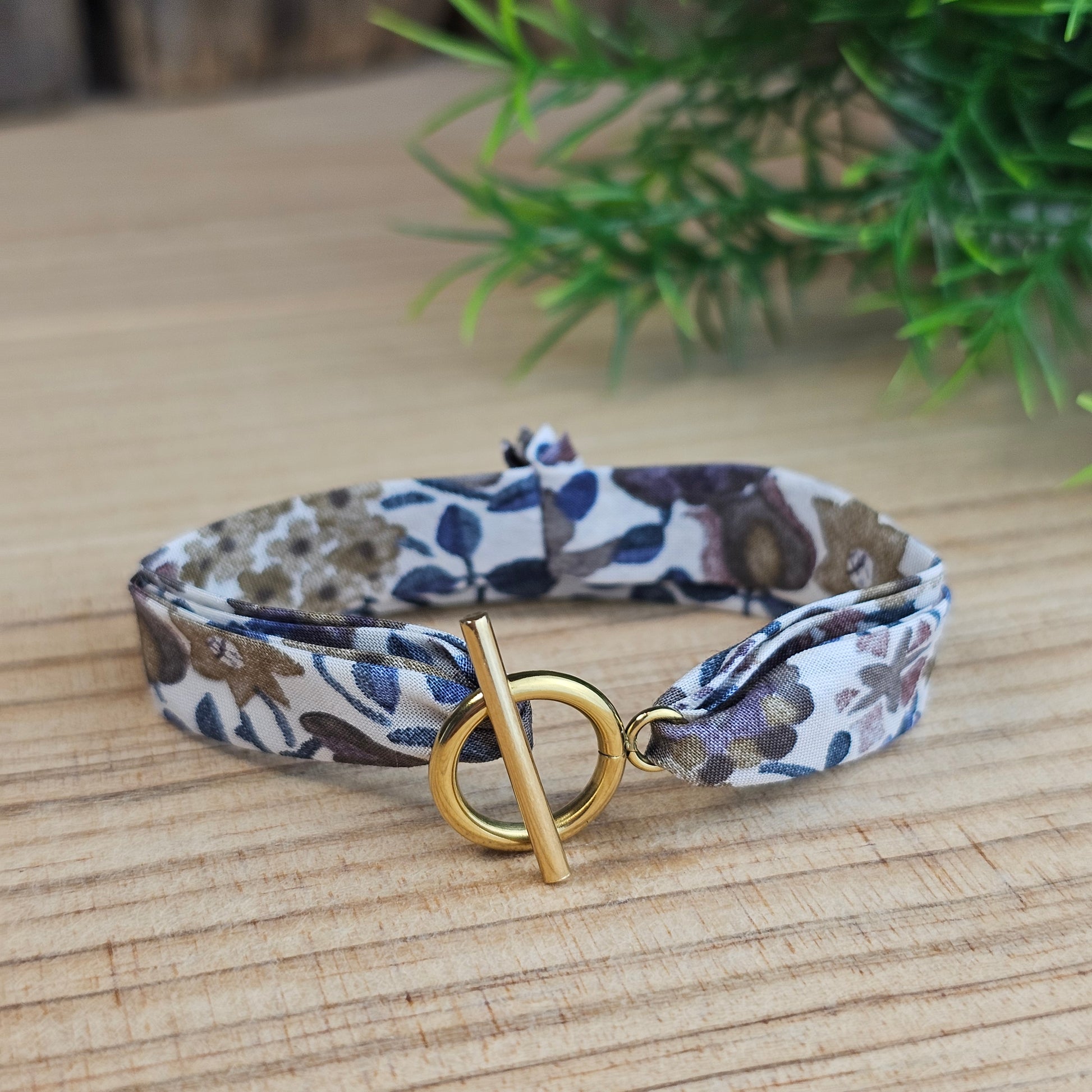 Bracelet en tissus liberty avec fermoir en acier inoxydable.