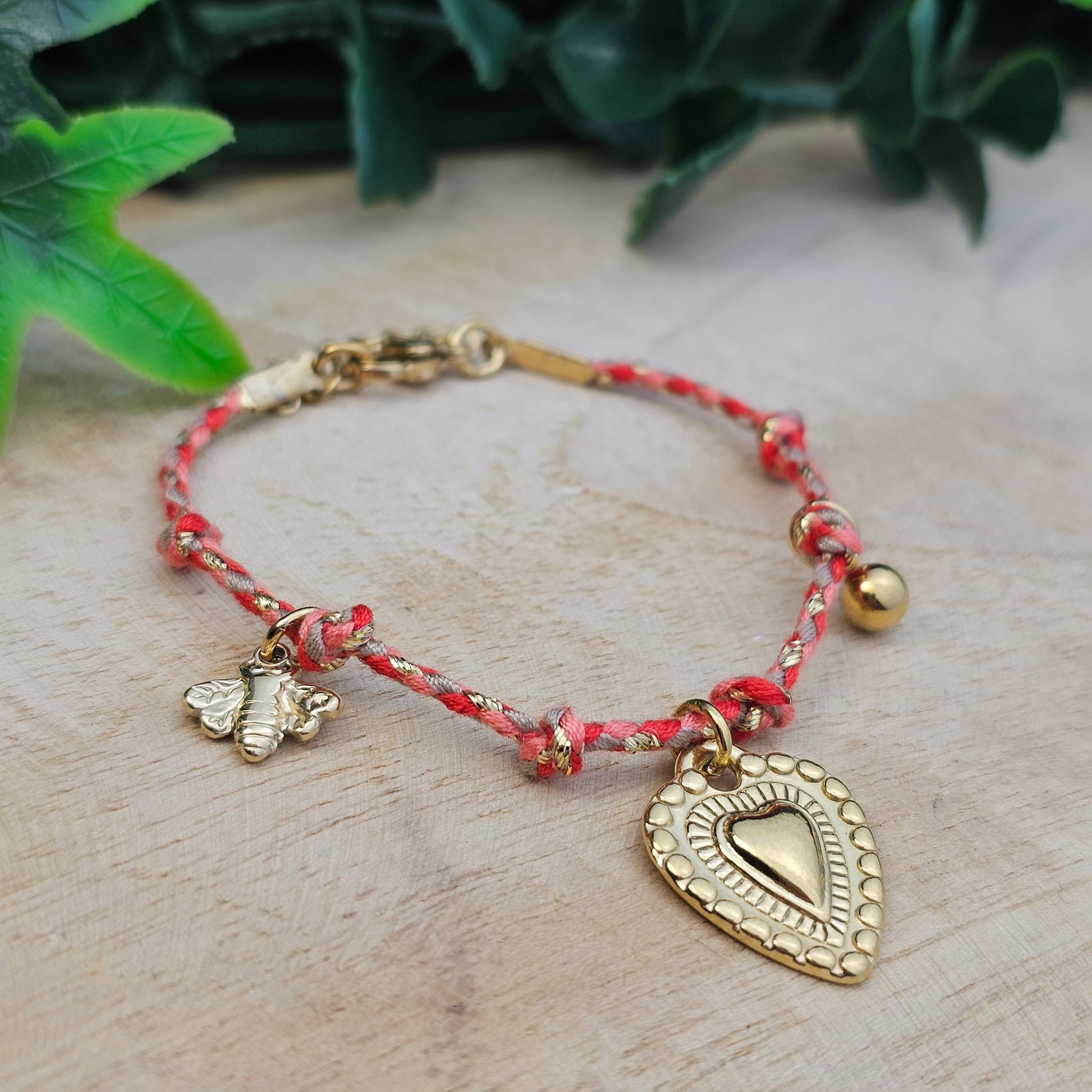 Un bracelet avec un cordon tressé et des pampilles en acier inoxydable.