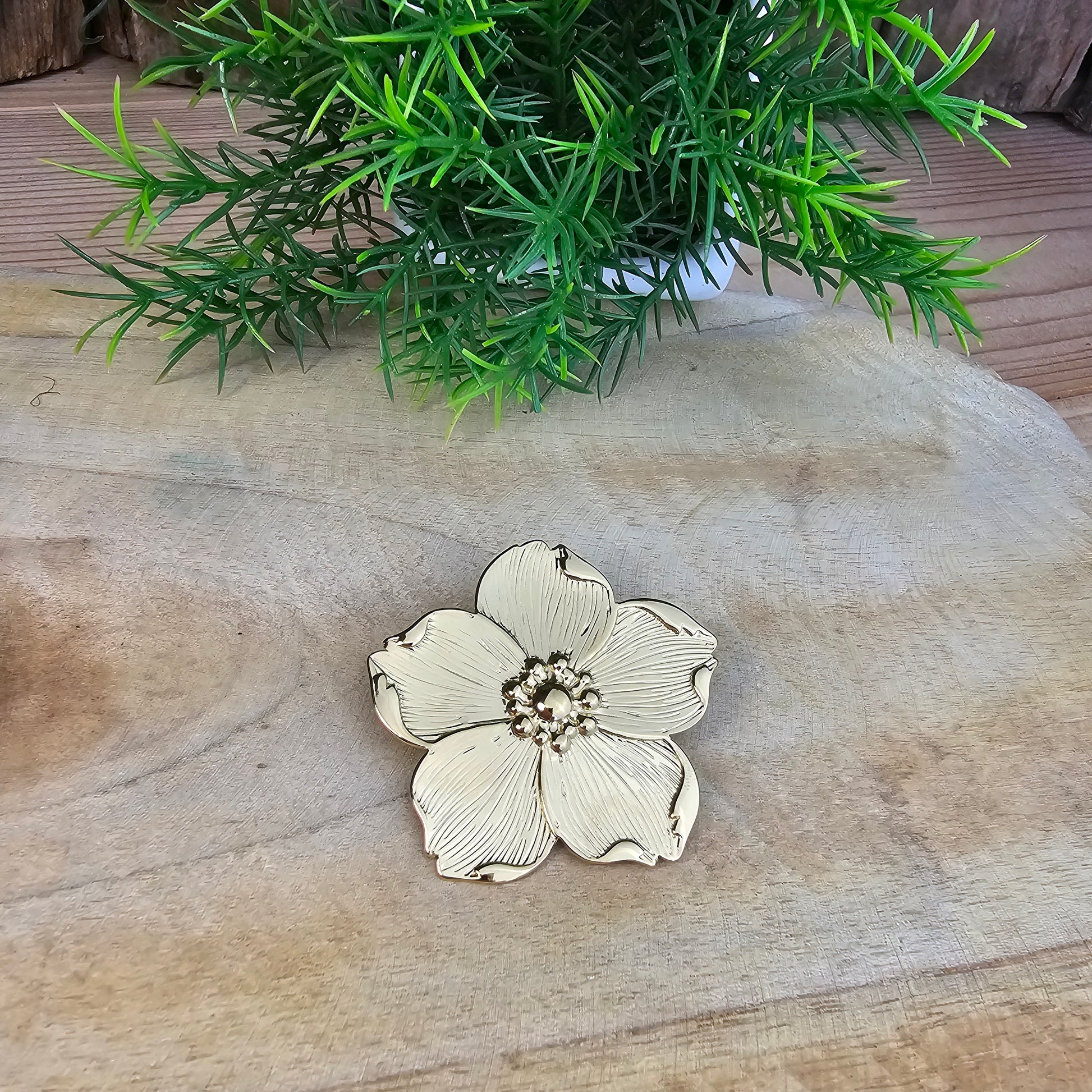 Jolie broche en acier inoxydable doré.