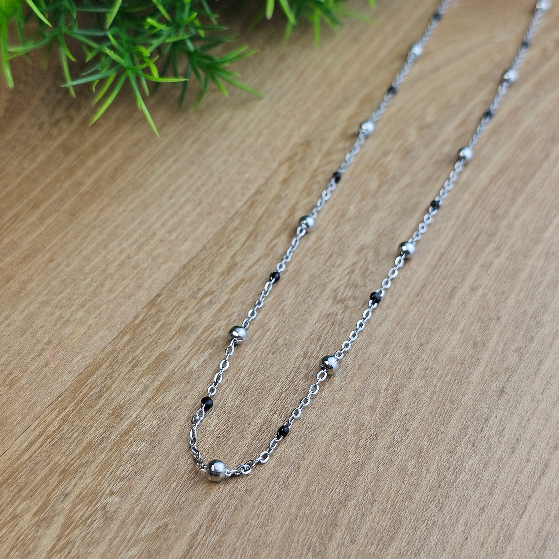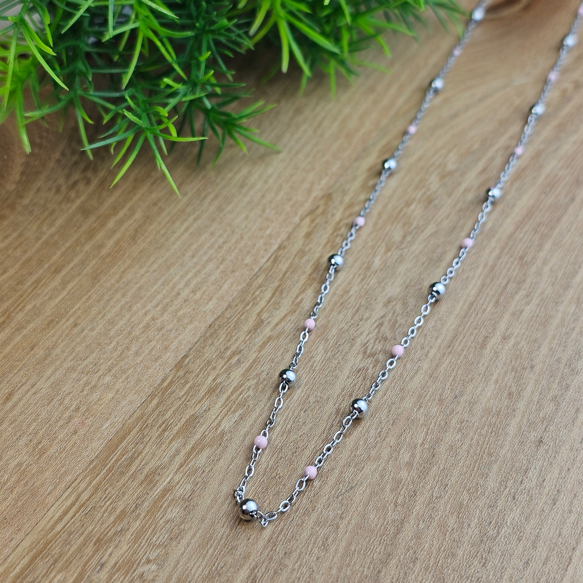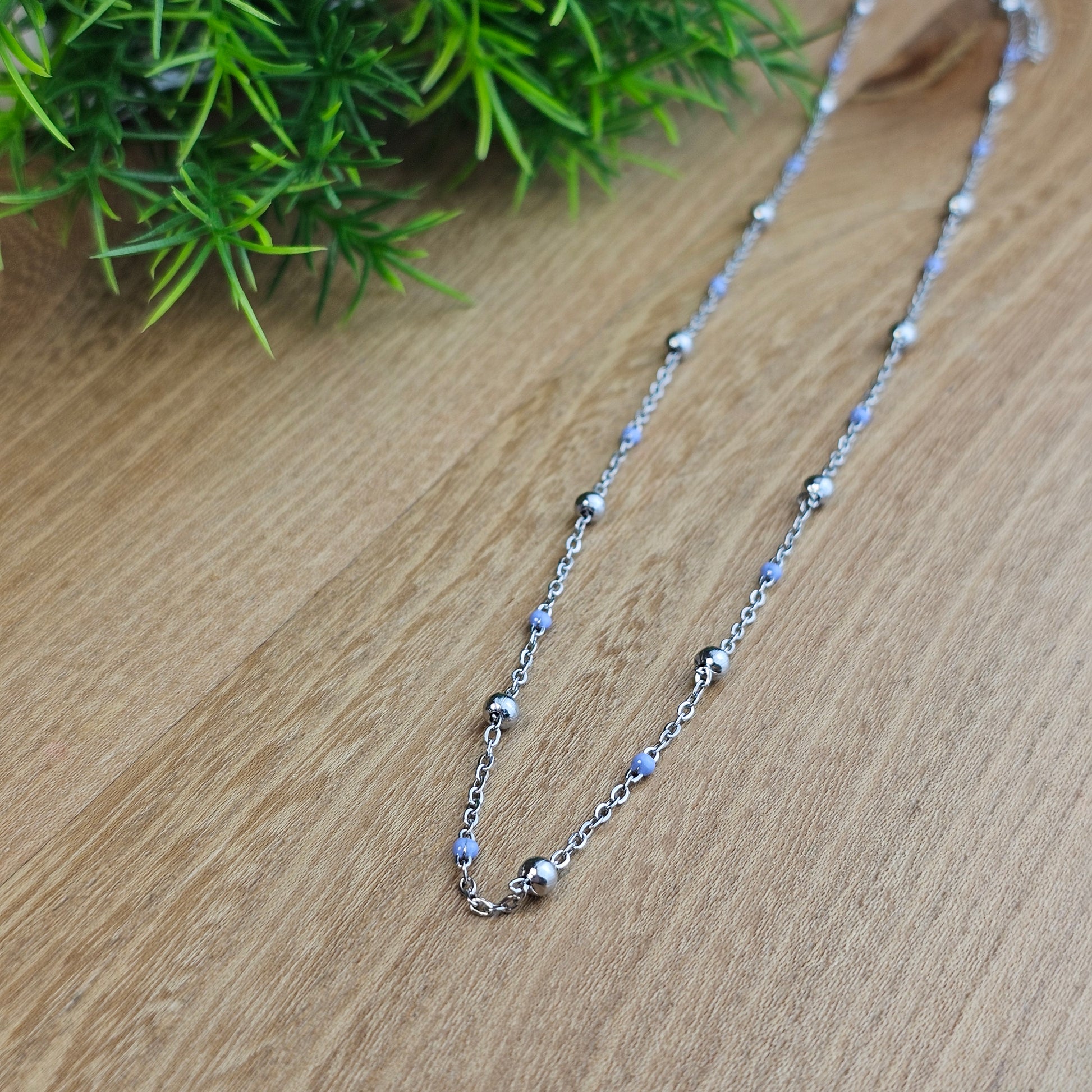 Collier en acier inoxydable. Chaîne avec perles en résine.