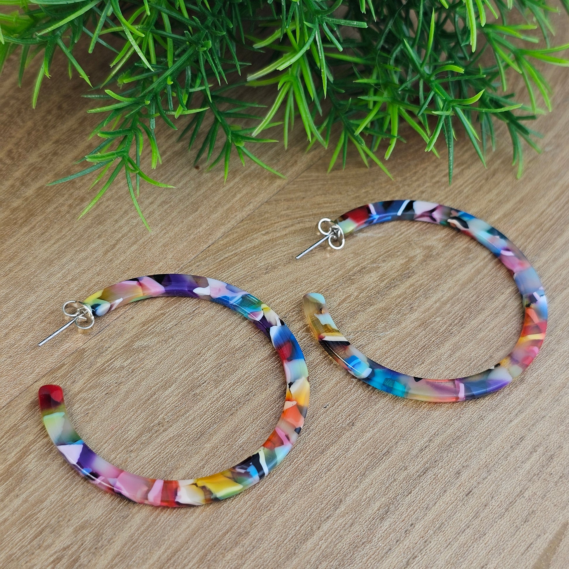 Boucles d'oreilles en acier inoxydable argenté et en résine
