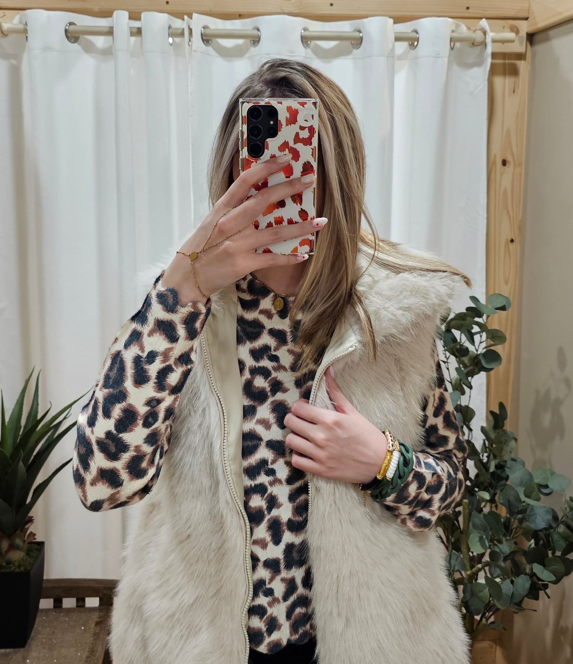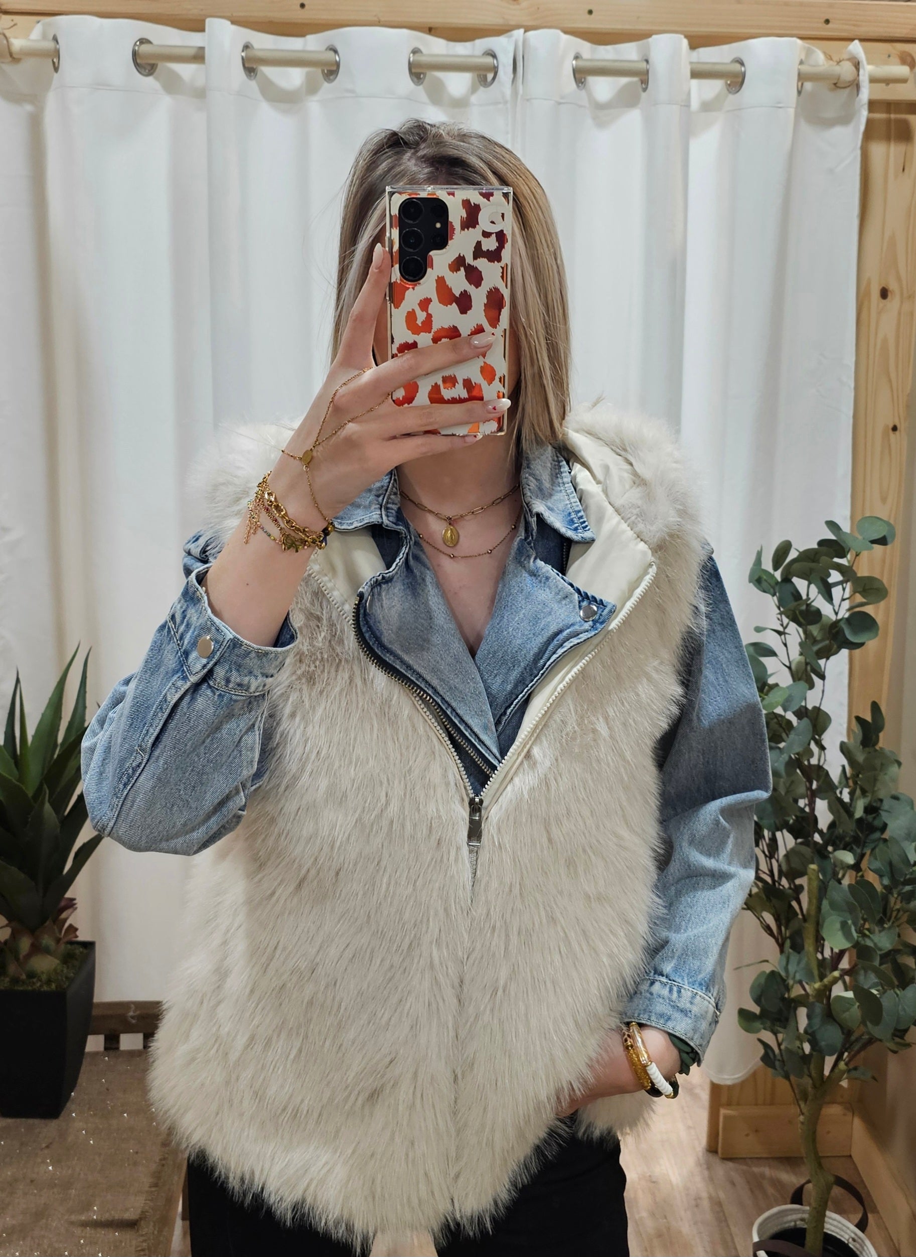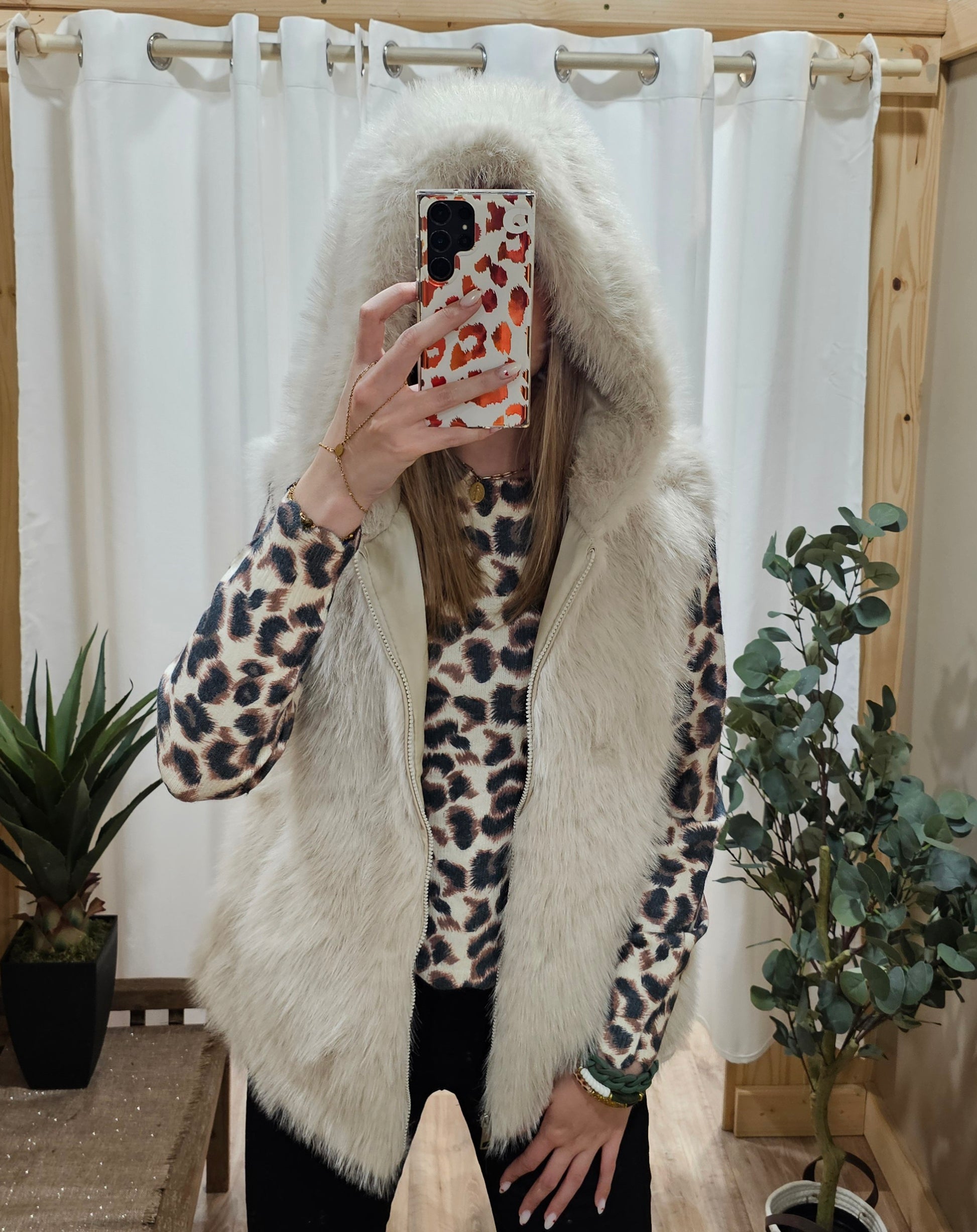 Gilet sans manche fausse fourrure écru