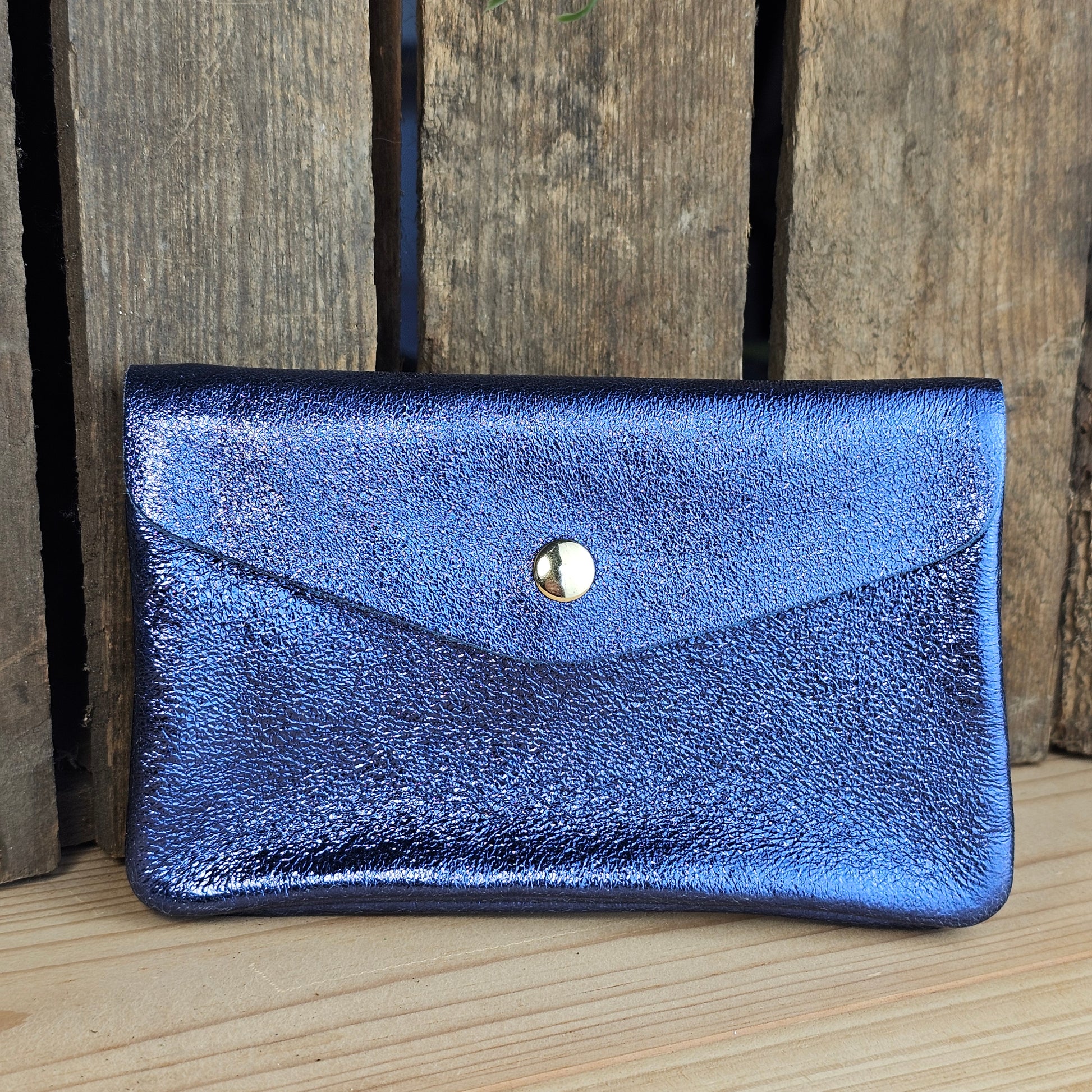 Grand porte monnaie en cuir bleu foncé