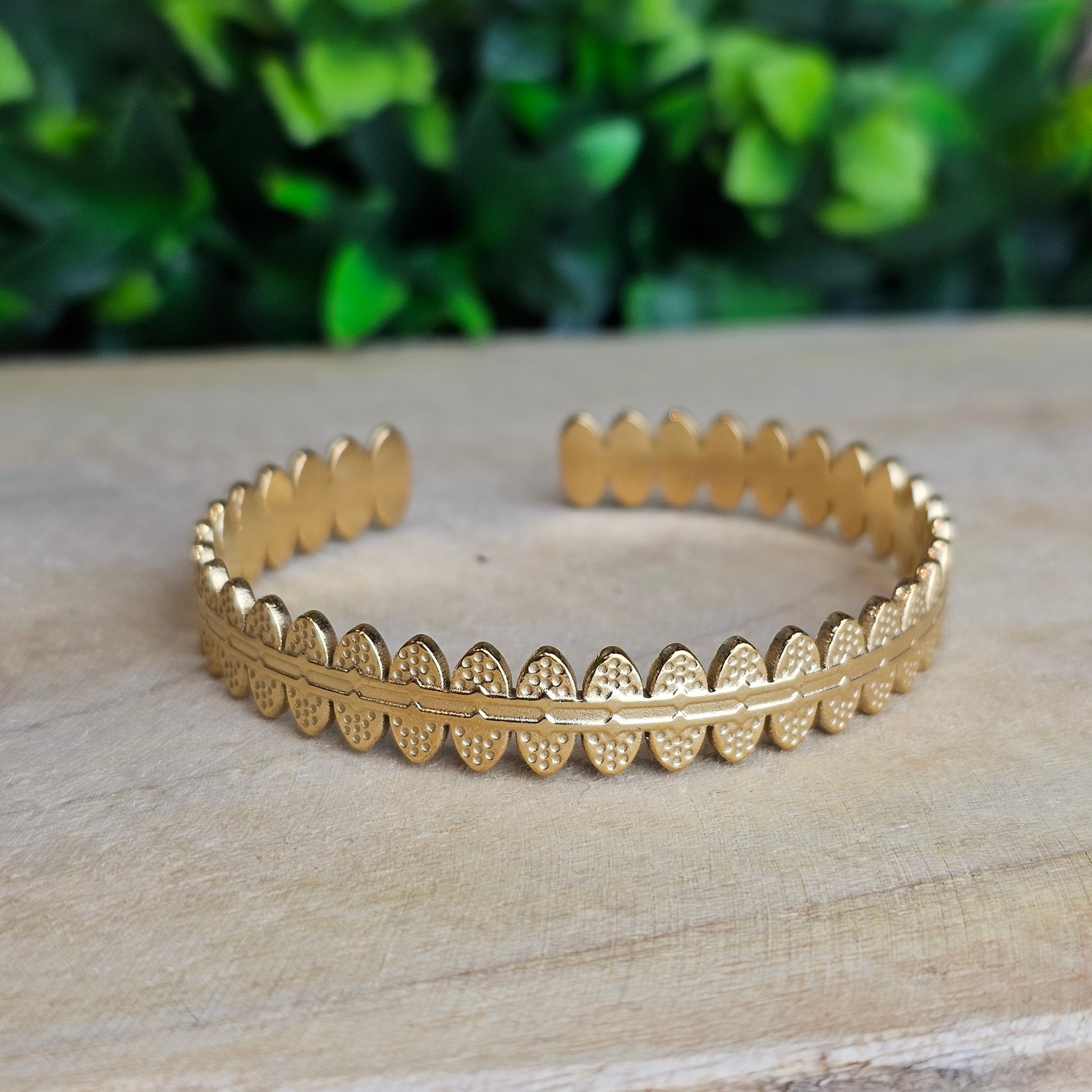 Confectionné en acier inoxydable doré, il allie élégance et durabilité.