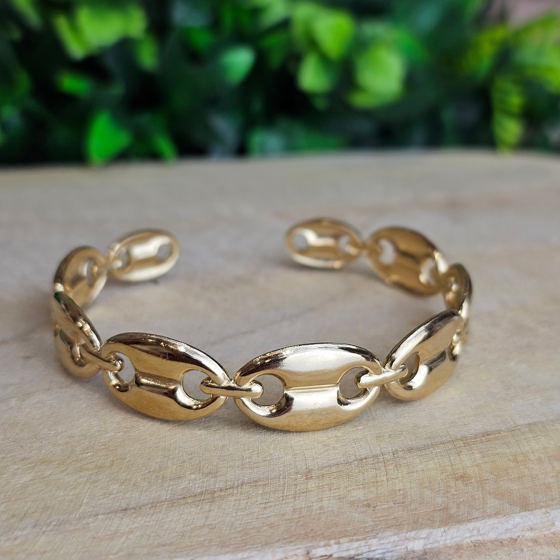 Confectionné en acier inoxydable doré, il allie élégance et durabilité.