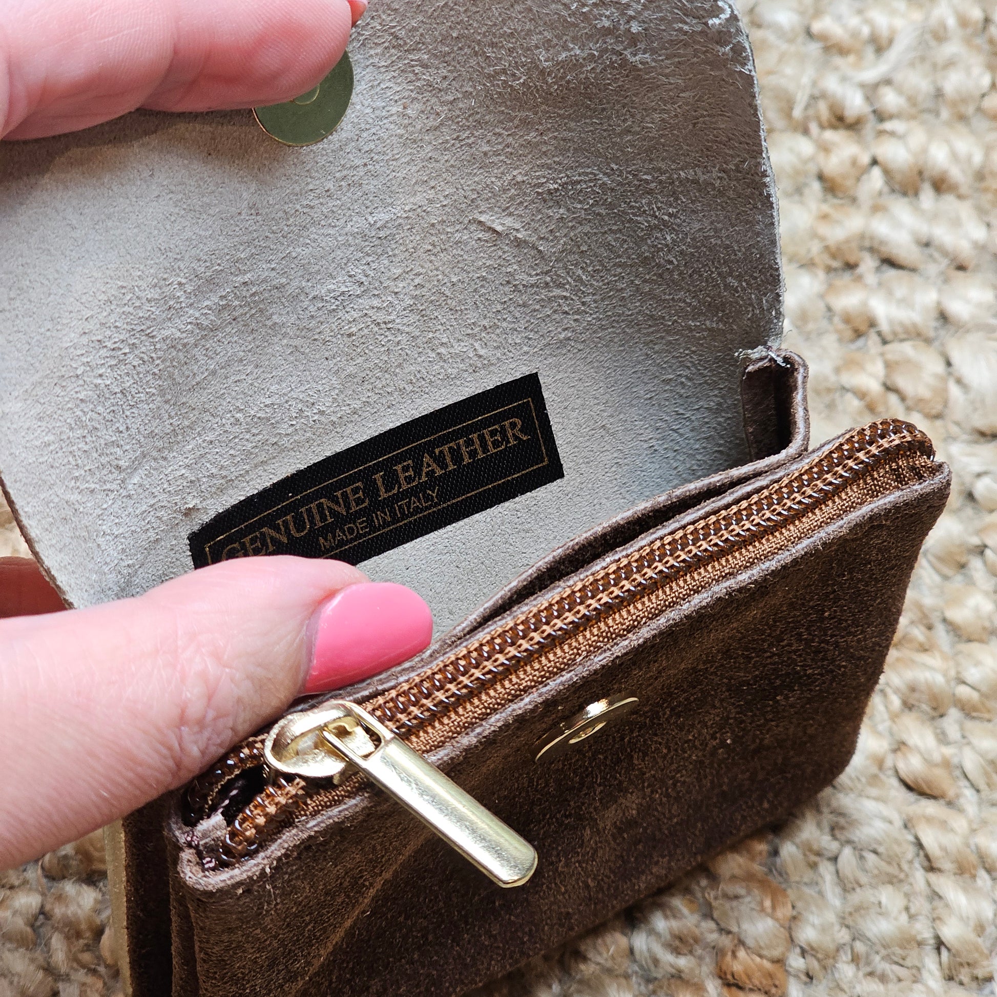 Rabat en cuir doré avec fermeture par bouton pression aimanté