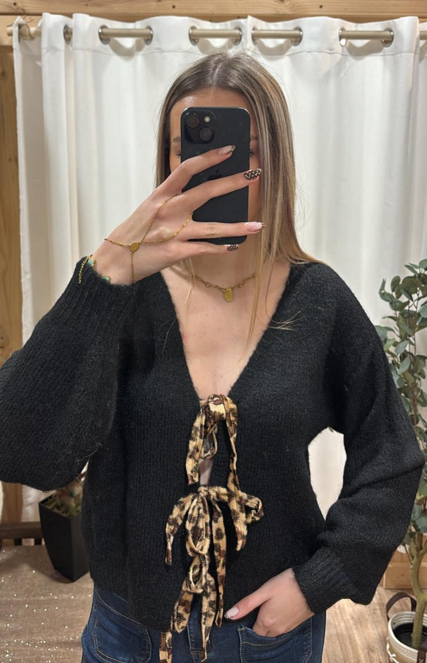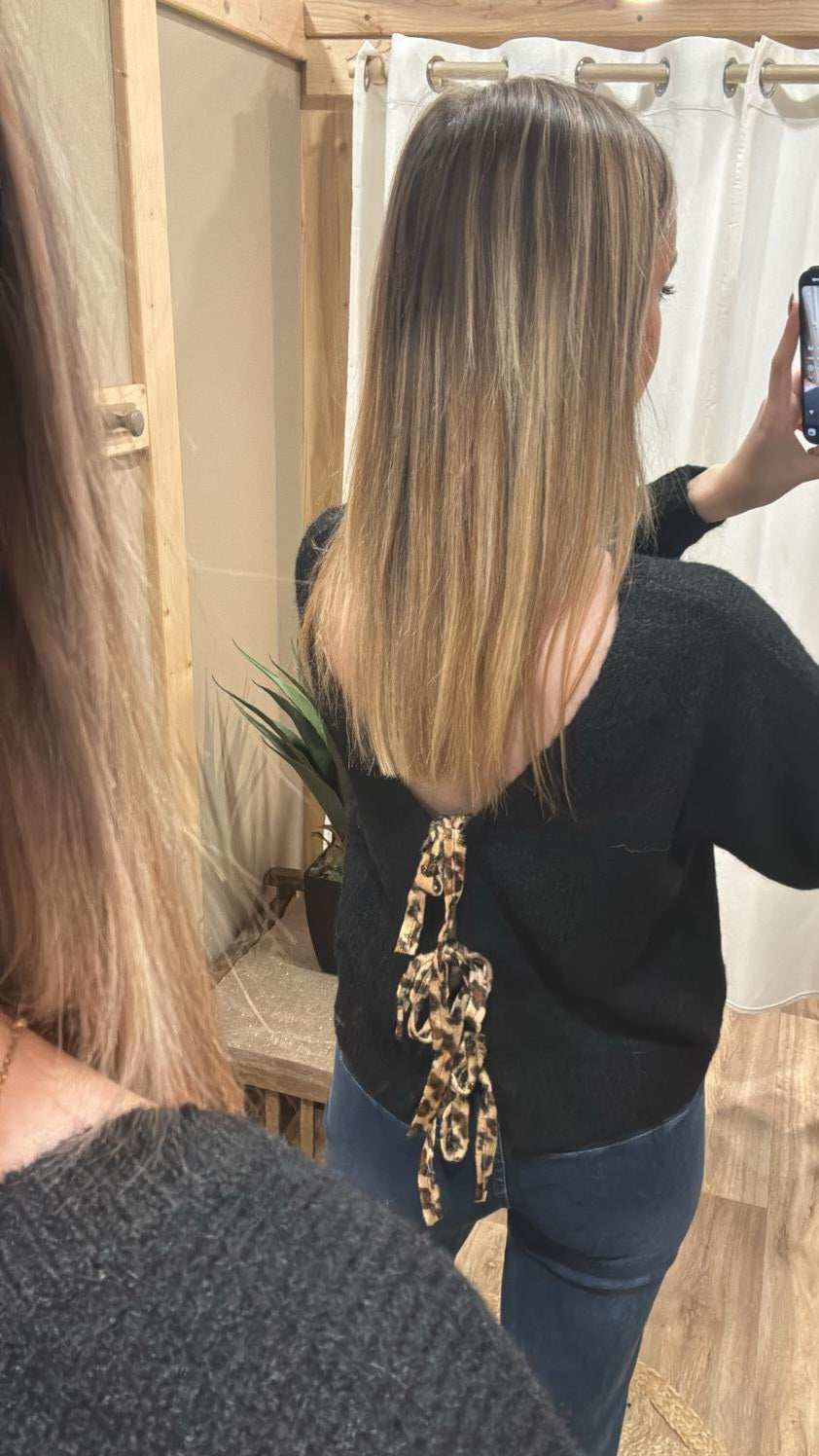 Pull noir lien léopard