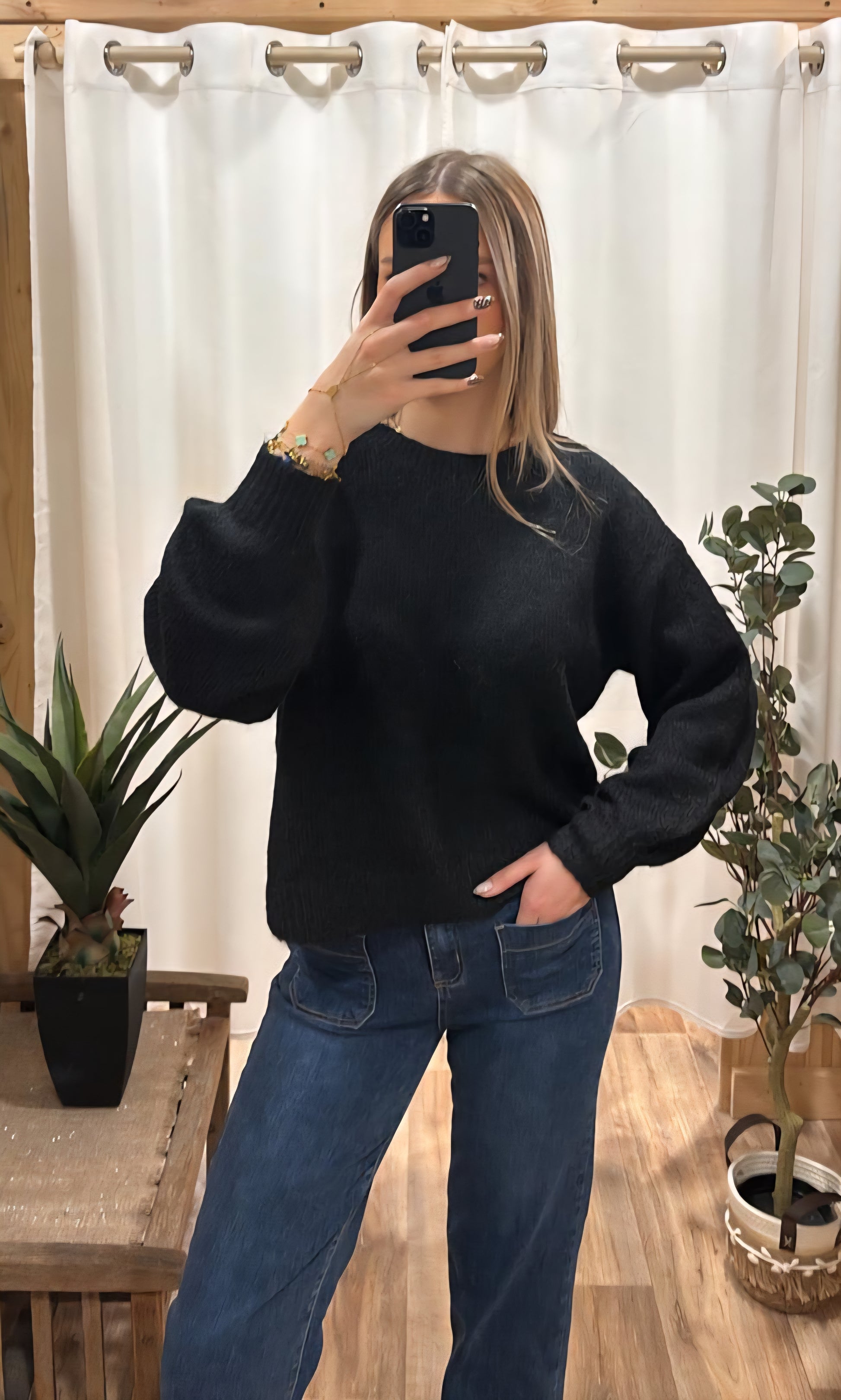 Le pull peut se porter avec les liens dans le dos ou devant