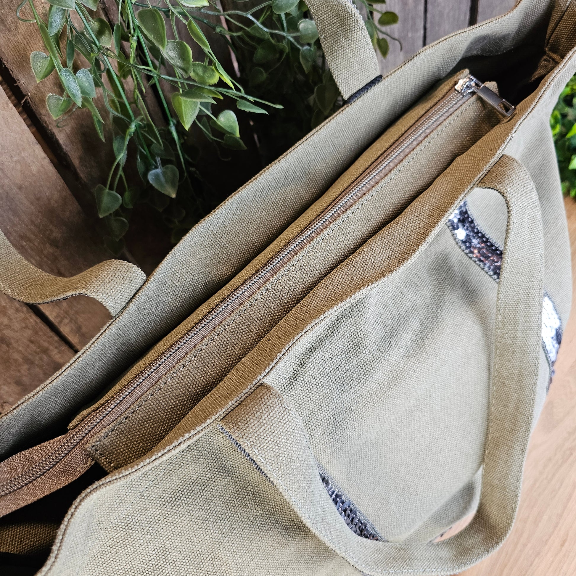 Sac cabas sequins kaki